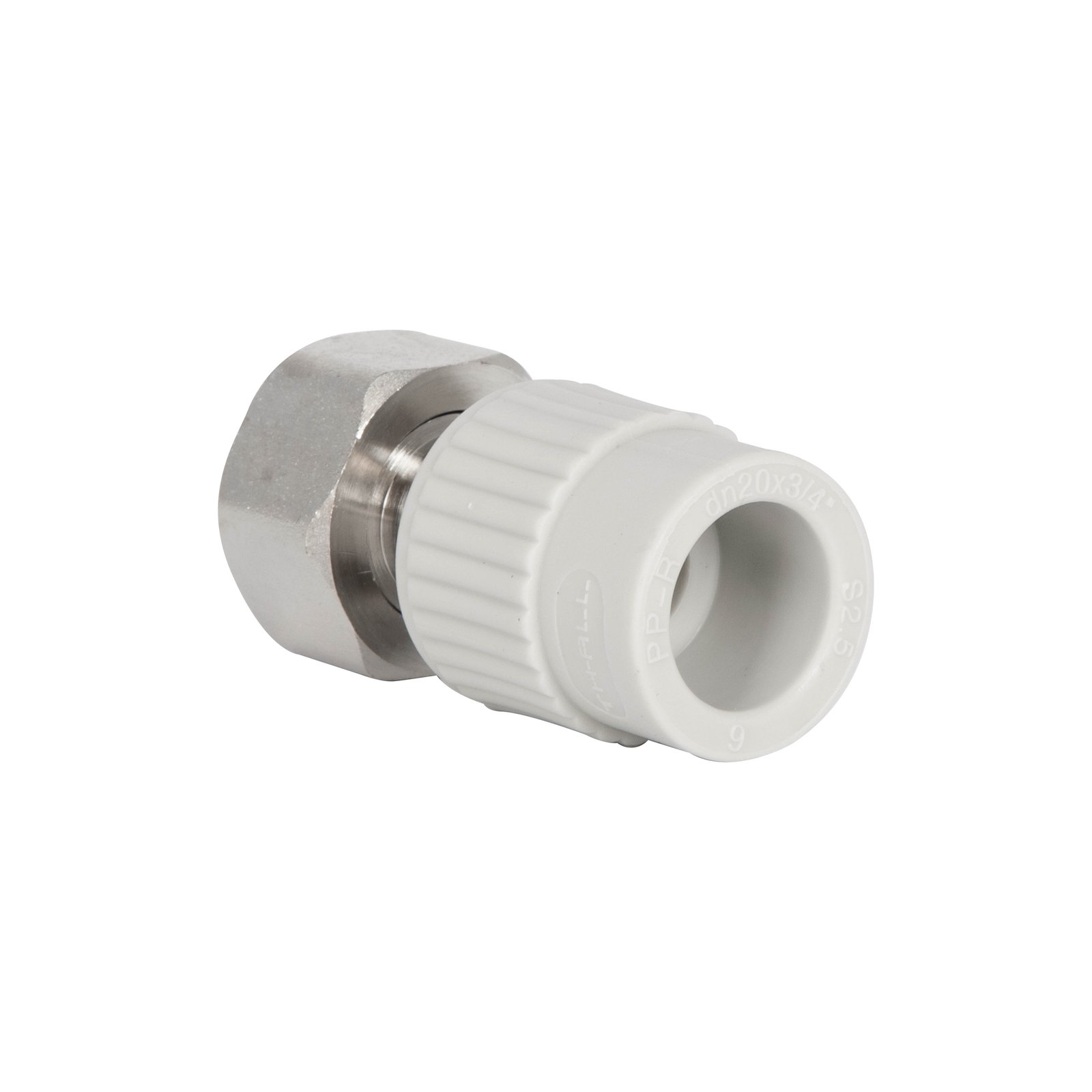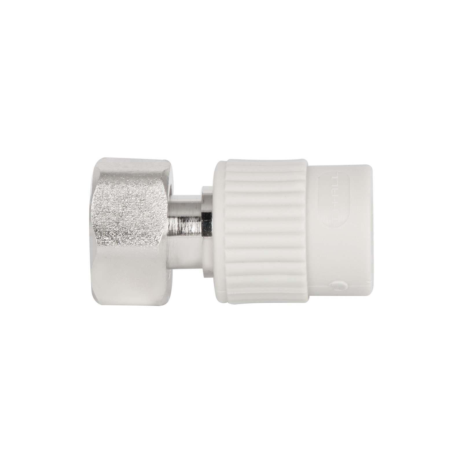 Муфта PPR Thermo Alliance с шестигранной накидной гайкой 20х3/4" ВР имеет полипропиленовый корпус с участком под гаечный или рычажный ключ. С одной стороны предусмотрен выход с диаметром 20 мм для подключения полипропиленовой трубы методом полифузной сварки. С другой стороны - накидную лат. диаметром резьбы 3/4".
