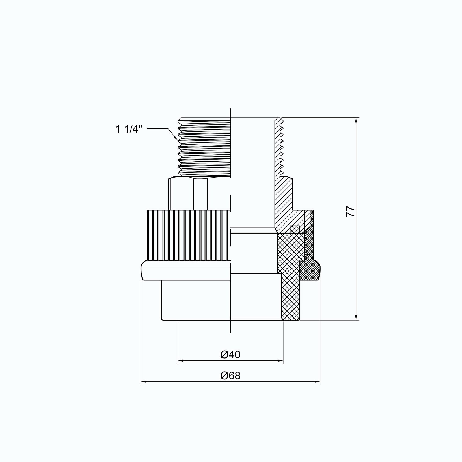 Муфта PPR Thermo Alliance 40х1" 1/4 НР — фитинг для выполнения соединения между трубой из полипропилена и компонентами инженерной системы водоснабжения/отопления с резьбовым подключением. К ППР-трубе фасонную деталь подсоединяют при помощи специального паяльника для полифузной сварки. Вставка из латуни снабжена наружной резьбой 1 1/4 дюйма. Согласно эксплуатационным условиям, рабочая температура носителя не должна превышать 90 °C.