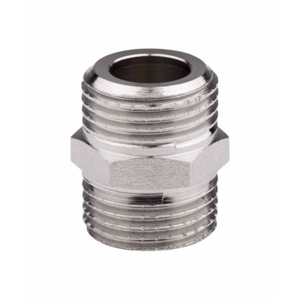 Ниппель SD Forte подключение 1" 1/4 НН изготовлен из никелированной латуни, предназначен для соединения труб одинакового диаметра.