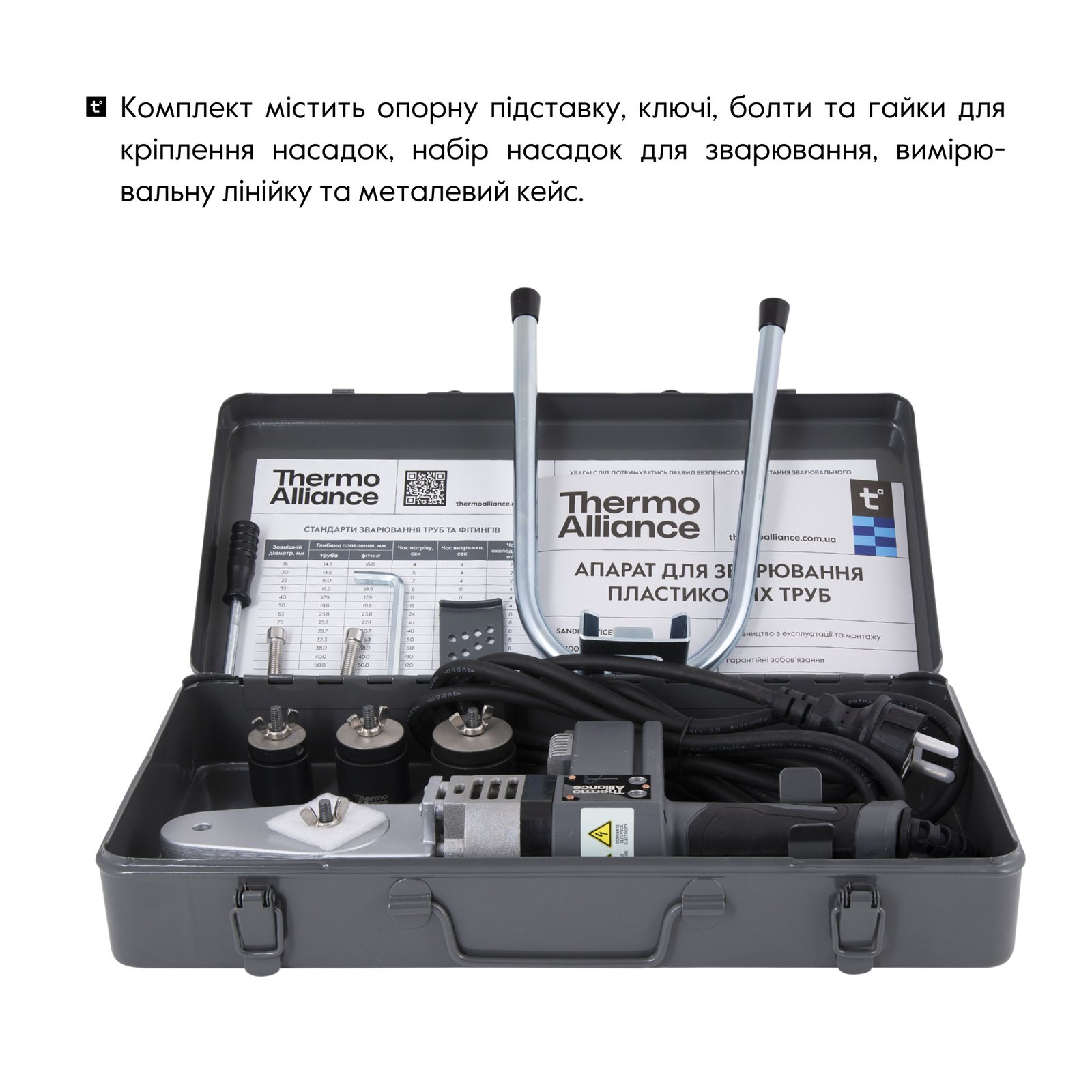 Thermo Alliance STD-101 Паяльник для PPR Ø20-32 (автоматический), 600W — это компактный и эффективный инструмент для пайки полимерных труб диаметром от 20 до 32 мм. Мощность 600 Вт обеспечивает быстрое нагревание и равномерное распределение тепла, что позволяет создавать прочные и герметичные соединения. Автоматическое управление значительно упрощает процесс пайки, повышая точность и снижая риск ошибок.