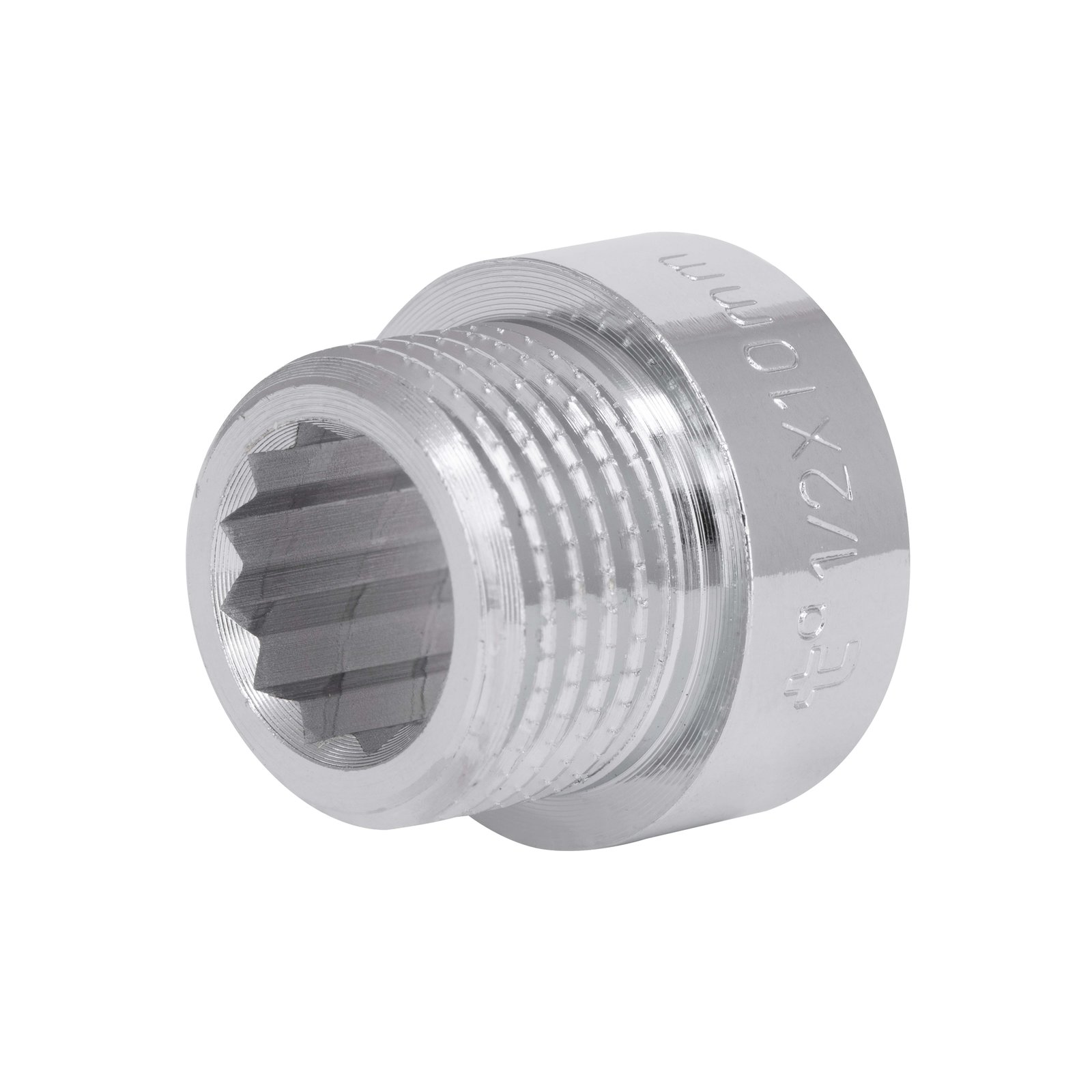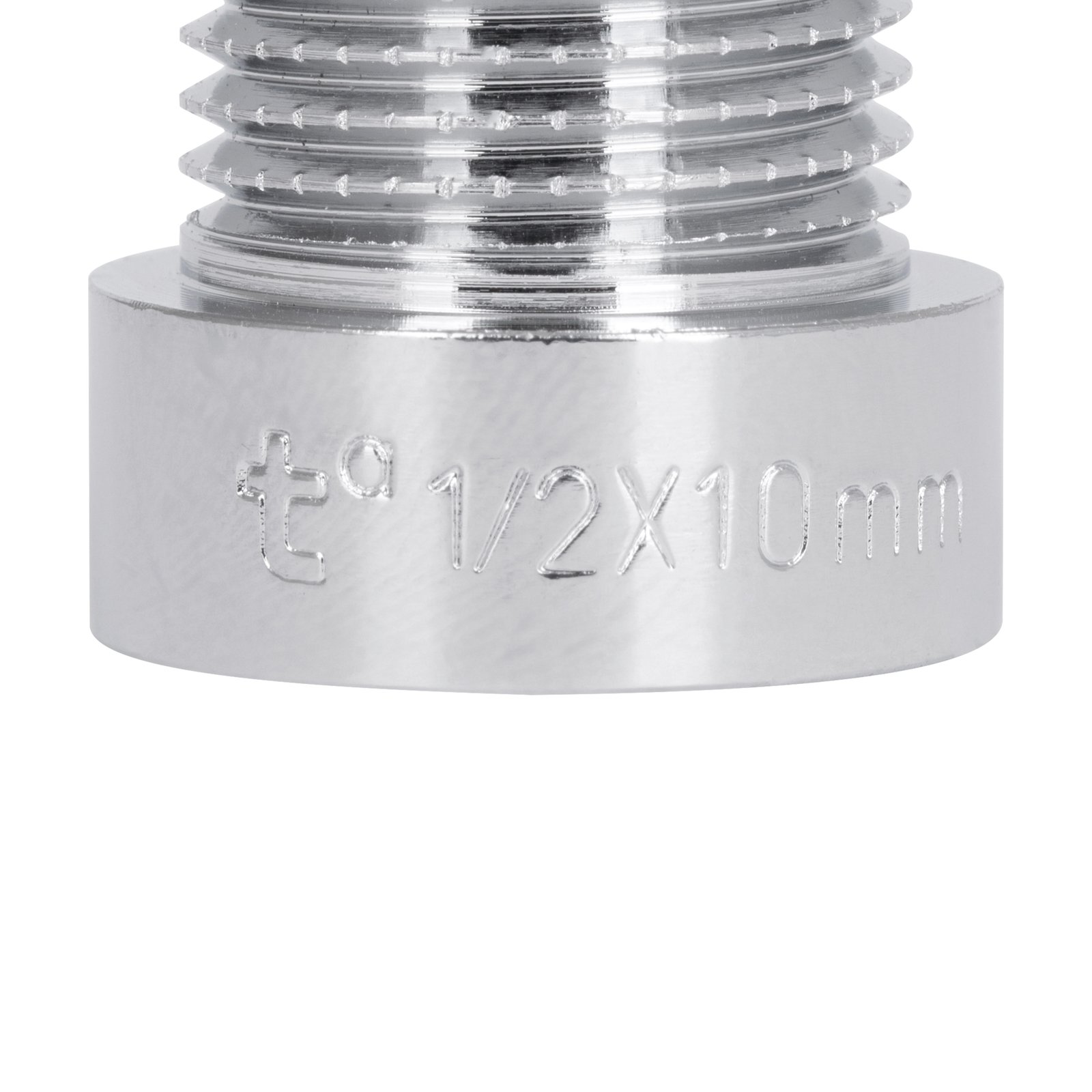 Подовжувач Thermo Alliance Forte 1/2"ВН 10 мм (TAF1301510) виготовлений із міцної латуні CW617N з термічним загартуванням, що забезпечує високу надійність і довговічність виробу. Хромоване покриття захищає від корозії та надає естетичного вигляду. Чітке гравіювання розміру та бренду гарантує зносостійкість маркування. Конструкція з 5-ма витками різьби та насічкою полегшує монтаж, а універсальні посадкові місця дають змогу використовувати як HEX-шестигранник, так і TORX-«зірочку». Подовжувач витримує робочий тиск до 40 бар і температуру до 120 °C, відповідаючи європейським стандартам товщини стінки.