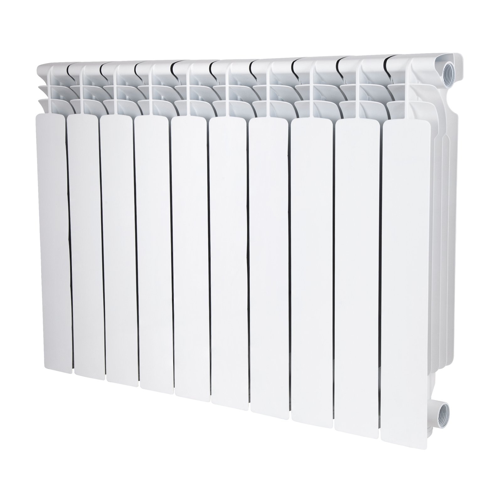 Алюминиевый радиатор Thermo Alliance серии All-Vulcan 500×96 мм (10 секций) — лёгкий и эффективный секционный радиатор (арт. V50096A) с боковым подключением, предназначенный для автономных и центральных систем отопления. Рабочее давление — до 16 бар, температура — до 110 °C. Вес одной секции — 1,05 кг, теплоотдача — 188 Вт. Совокупная мощность комплекта из 10 секций — 1880 Вт. Межосевое расстояние — 500 мм. Материал — алюминий, толщина стальной трубки — 2 мм.