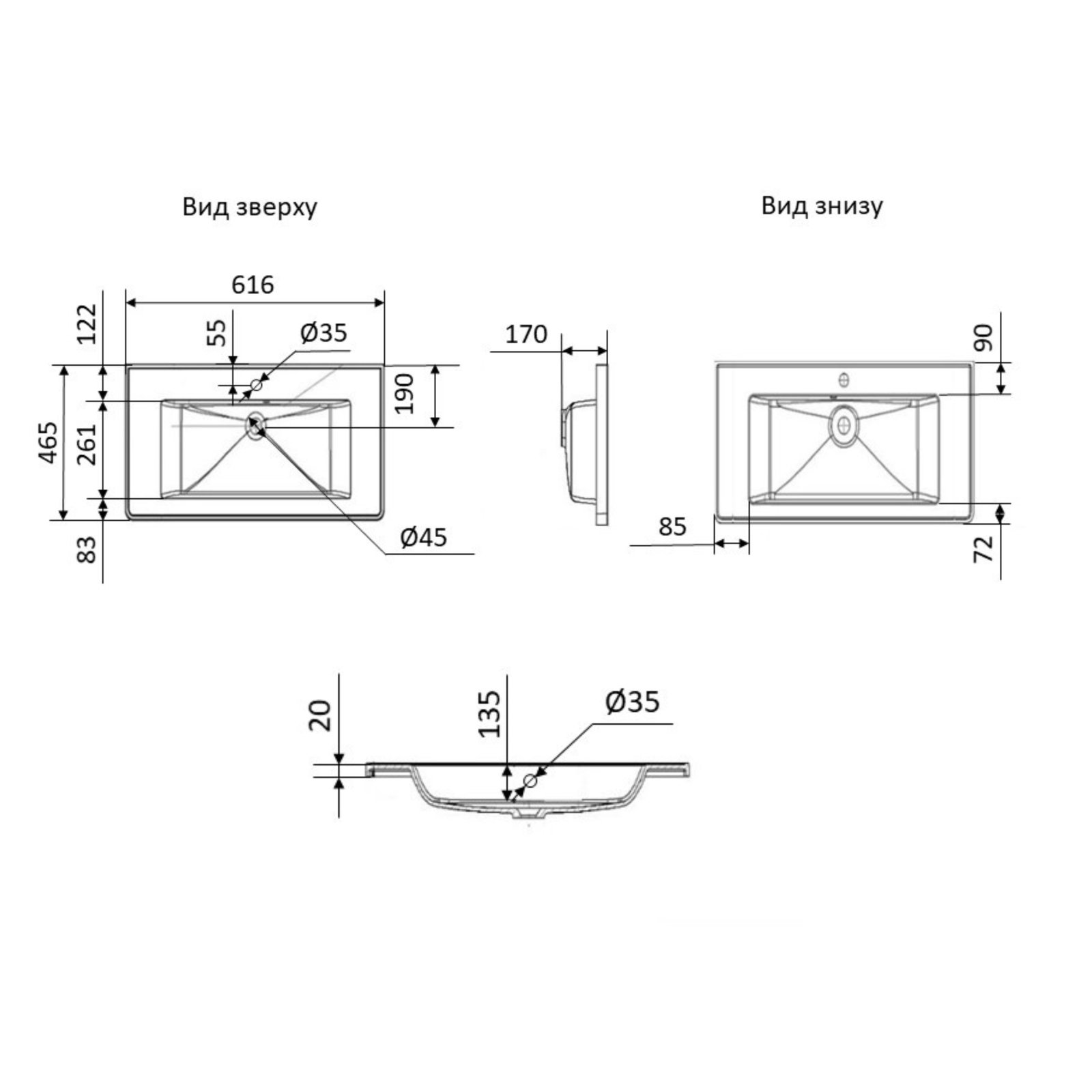 Габарити чаші (ШхДхГ), мм