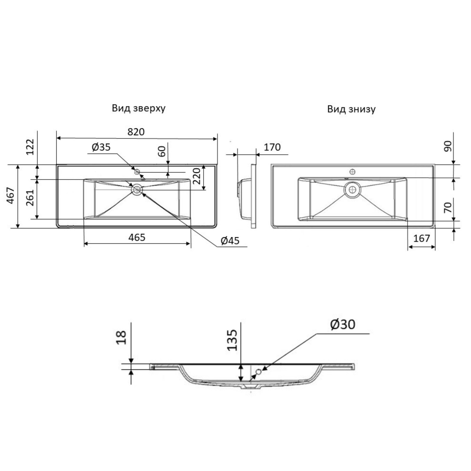 Габарити чаші (ШхДхГ), мм