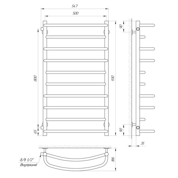 Рушникосушарка - 1 шт, кріплення (шуруп оцинкований з дюбелем, п'ятак, втулка, штифт, стійка) - 4 шт, кран Маєвського 1/2 " - 1 шт, заглушка різьбова 1/2 " - 2 шт, ковпачок декоративний - 2 шт, ключ шестигранний - 1 шт, упаковка (короб гофрокартонний, чохол поліетиленовий, чохол поліетиленовий для кріплення, короб гофрокартонний для кріплень) - 1 шт, паспорт - 1 шт.