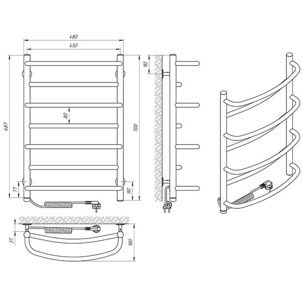 При вмиканні рушникосушарки в електричну мережу засвітиться та згасне підсвітка (синій колір), що сигналізує про справність регулятора. Регулятор S3 має три режими роботи: "min", "mid" та "max". Режими перемикаються короткочасним доторканням до сенсора (<2 сек) - один за одним по колу. Сенсор розміщується на торці нижньої стійки з регулятором.
