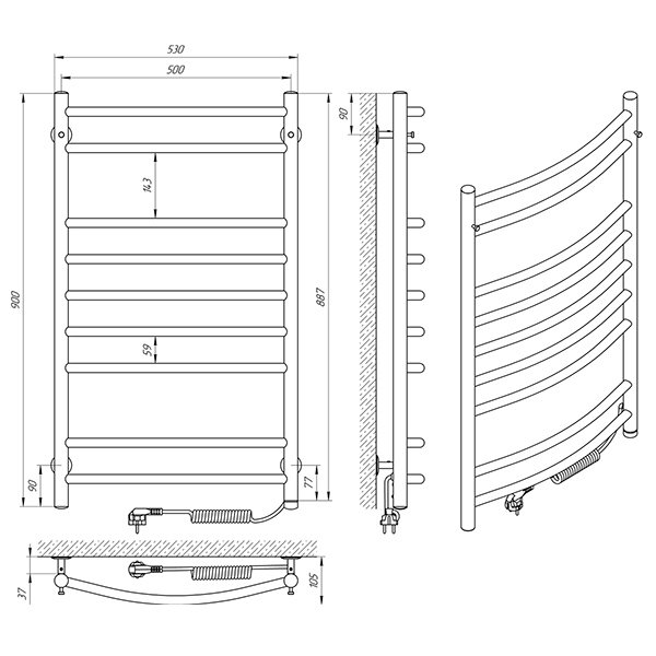 При вмиканні рушникосушарки в електричну мережу засвітиться та згасне підсвітка (синій колір), що сигналізує про справність регулятора. Регулятор S3 має три режими роботи: "min", "mid" та "max". Режими перемикаються короткочасним доторканням до сенсора (<2 сек) - один за одним по колу. Сенсор розміщується на торці нижньої стійки з регулятором.