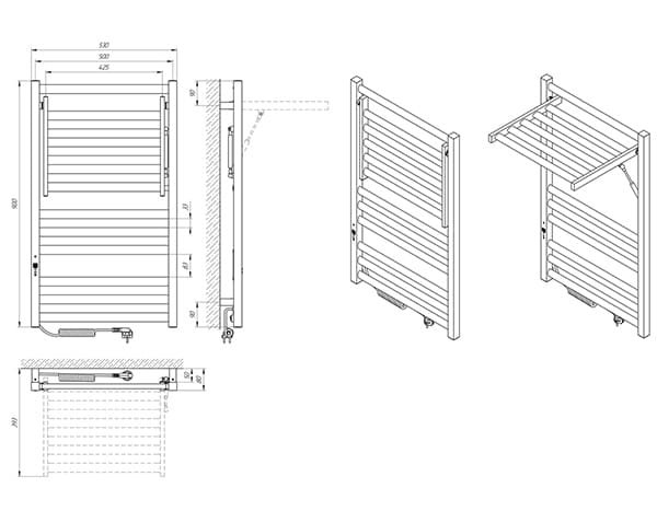 Рушникосушарка – 1 шт, кріплення (шуруп оцинкований з дюбелем, п'ятак, втулка, штифт, стійка) - 4 шт, ключ шестигранний – 1 шт, упаковка (короб картонний, чохол поліетиленовий, чохол поліетиленовий для кріплення, коробочка для кріплень) – 1 шт, паспорт – 1 шт.