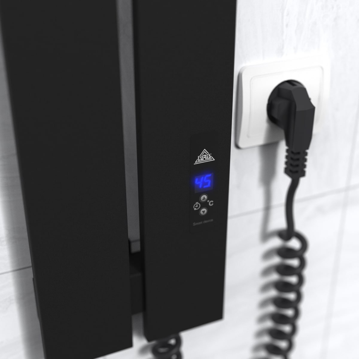 Особливості: керує нагрівом електрорушникосушарки мікропроцесорний термоконтроллер (кнопкове управління). Для початку роботи необхідно задати температуру рушникосушарки в градусах. Термодатчик контролює температуру поверхні рушникосушарки, що виключає можливість її перегріву. Серед переваг регулятора - автоматичне зниження потужності (ЕКО-режим), наявність таймера відключення (1-12h) і блокування кнопок (захист від дітей)!