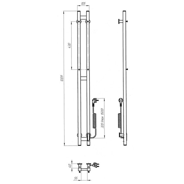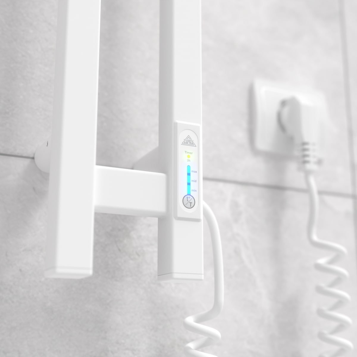 Особливості: керує нагрівом електрорушникосушарки мікропроцесорний термоконтроллер (кнопкове управління). Для початку роботи необхідно задати температуру рушникосушарки. Термодатчик контролює температуру поверхні рушникосушарки, що виключає можливість її перегріву. Серед переваг регулятора - зберігання обраного режиму роботи (при відключенні робота відновитися в запрограмованому користувачем режимі), наявність таймера відключення (3h) і колірної індикації роботи!