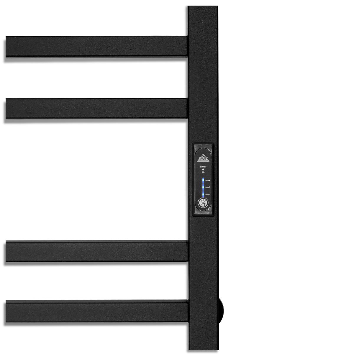 Особливості: керує нагрівом електрорушникосушарки мікропроцесорний термоконтроллер (кнопкове управління). Для початку роботи необхідно задати температуру рушникосушарки. Термодатчик контролює температуру поверхні рушникосушарки, що виключає можливість її перегріву. Серед переваг регулятора - зберігання обраного режиму роботи (при відключенні робота відновитися в запрограмованому користувачем режимі), наявність таймера відключення (3h) і колірної індикації роботи!
