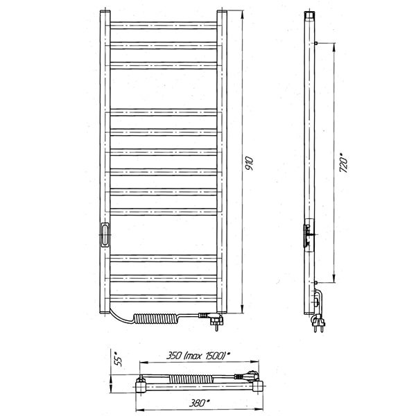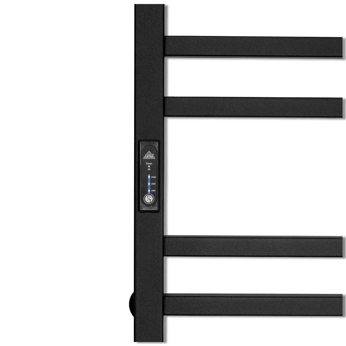 Особливості: керує нагрівом електрорушникосушарки мікропроцесорний термоконтроллер (кнопкове управління). Для початку роботи необхідно задати температуру рушникосушарки. Термодатчик контролює температуру поверхні рушникосушарки, що виключає можливість її перегріву. Серед переваг регулятора - зберігання обраного режиму роботи (при відключенні робота відновитися в запрограмованому користувачем режимі), наявність таймера відключення (3h) і колірної індикації роботи!