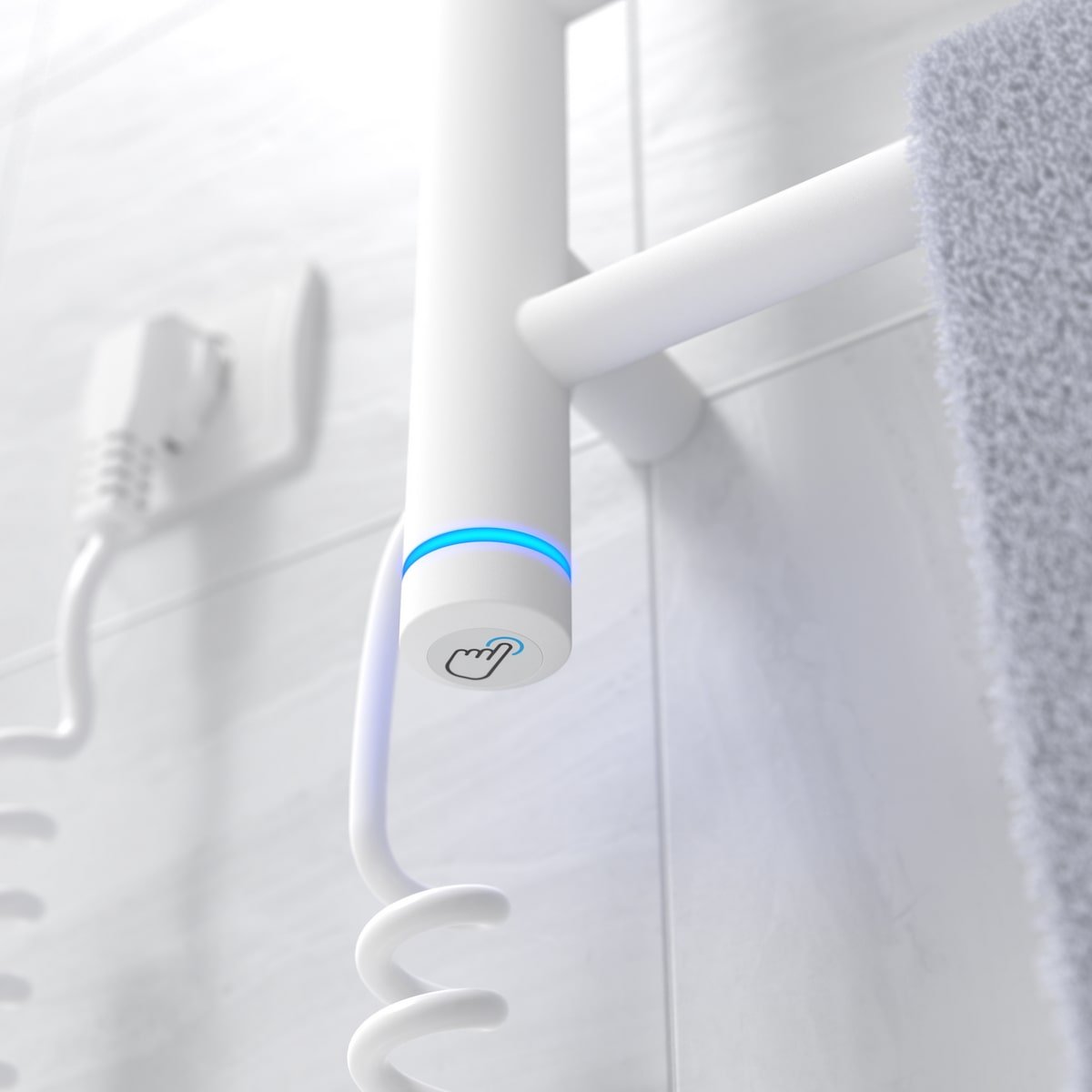 При вмиканні рушникосушарки в електричну мережу засвітиться та згасне підсвітка (синій колір), що сигналізує про справність регулятора. Регулятор S3 має три режими роботи: "min", "mid" та "max". Режими перемикаються короткочасним доторканням до сенсора (<2 сек) - один за одним по колу. Сенсор розміщується на торці нижньої стійки з регулятором.