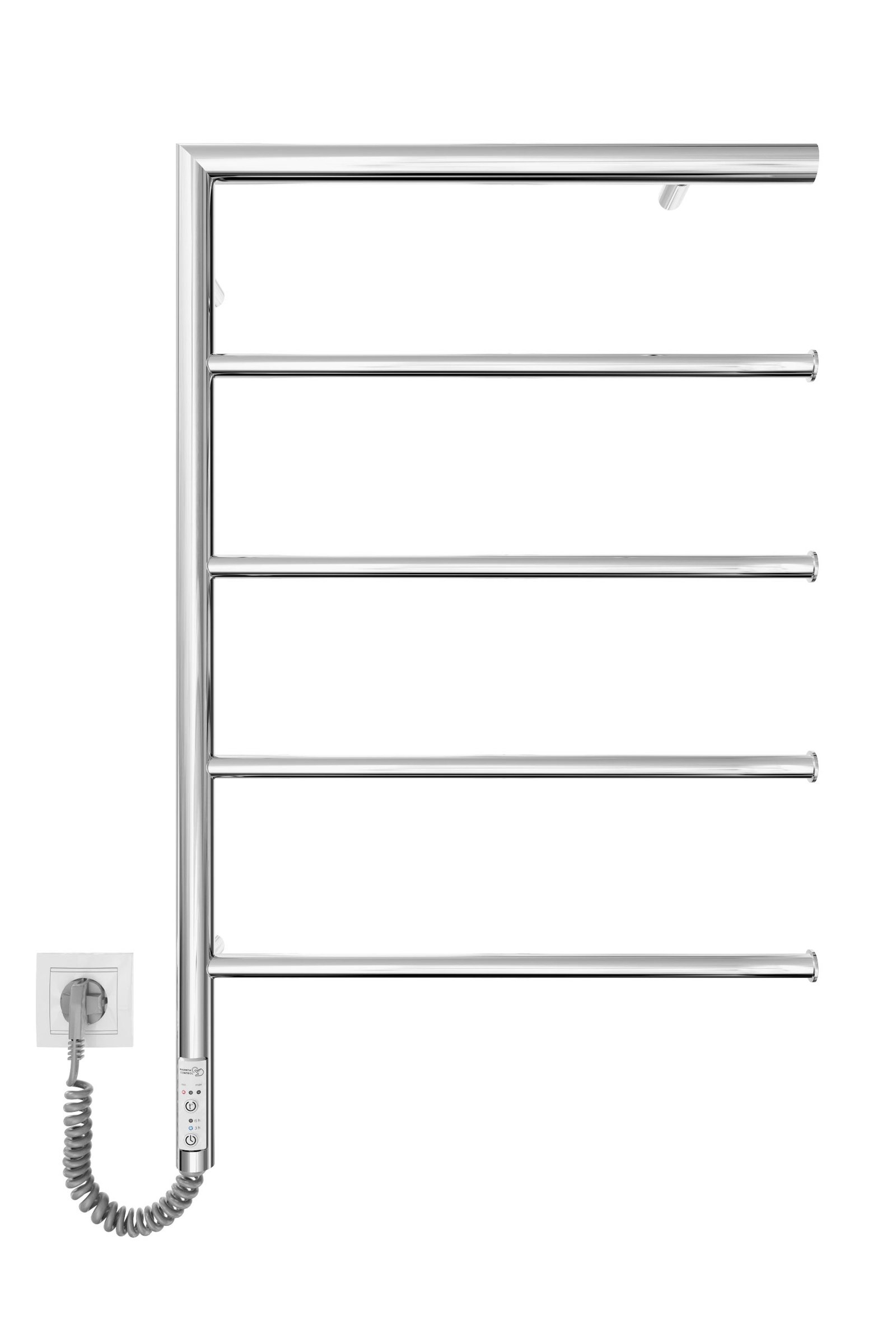 Бытовая электрическая полотенцесушилка Рушникосушка Romeo-І 770х530/80 ТR лівий. Оснащена таймер-регулятором и коннектором для подключения к розетке с любой стороны. Совместима с комплектом скрытого подключения. Имеет 5 перекладин и стойки. Изготовлена из полированной нержавеющей стали без хромирования. Температурные режимы таймер-регулятора: 40°С, 45°С, 50°С. Варианты времени работы: 3, 6 часов и постоянный нагрев. Мощность [3 Вт]. Для удобства использования можно дополнительно оснастить навесными крючками. Гарантия — .