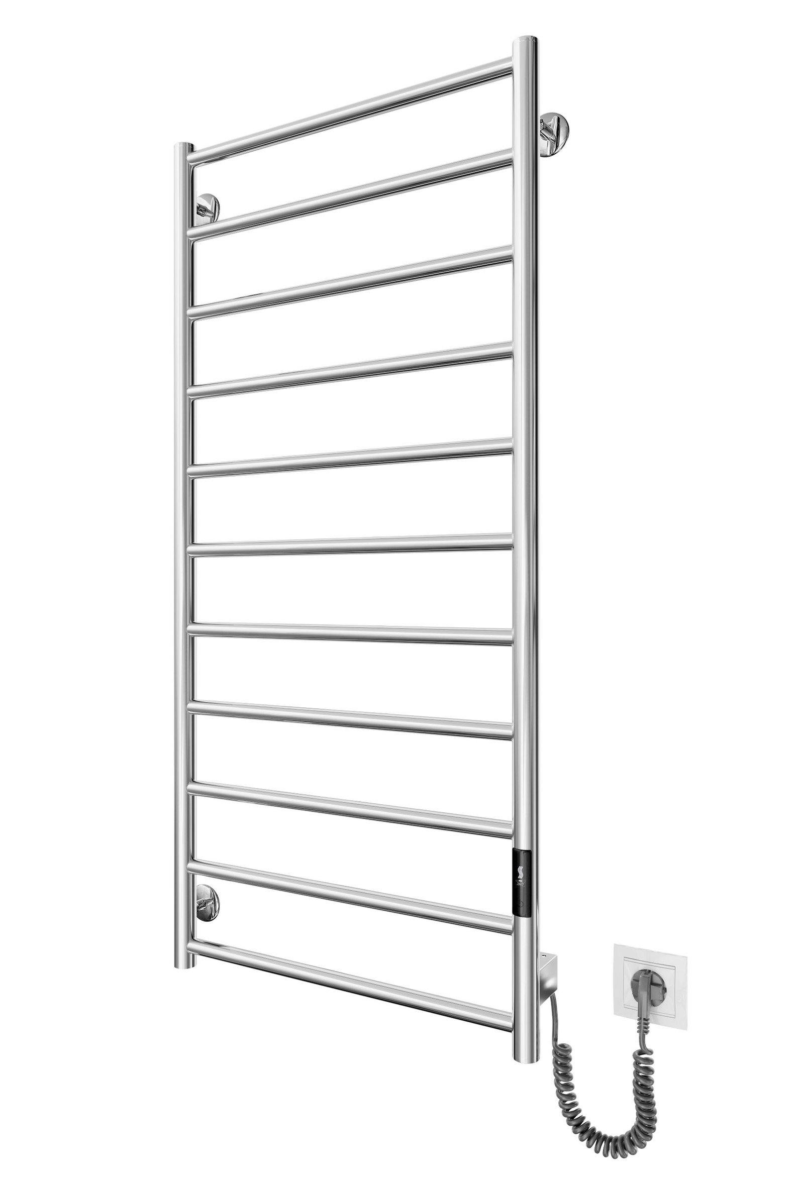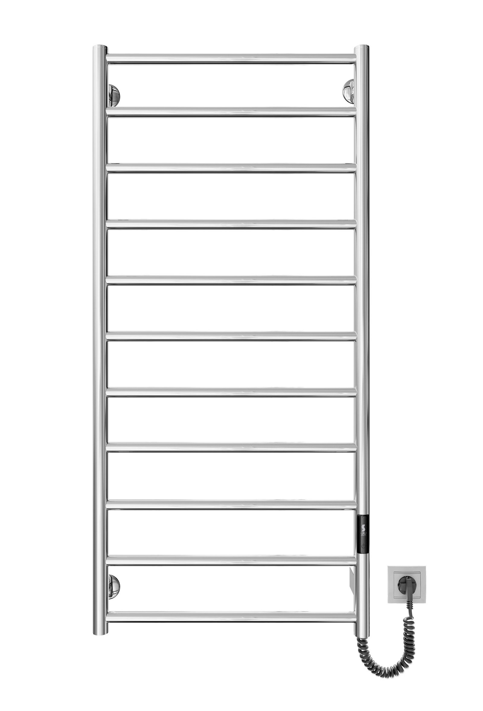 Бытовая электрическая полотенцесушилка Рушникосушка Урбан-I 1110x500/85 TR K 2.0. Оснащена таймер-регулятором и коннектором для подключения к розетке с любой стороны. Совместима с комплектом скрытого подключения. Имеет 11 перекладин и стойки. Изготовлена из полированной нержавеющей стали без хромирования. Температурные режимы таймер-регулятора: 40°С, 45°С, 50°С. Варианты времени работы: 3, 6 часов и постоянный нагрев. Мощность [3 Вт]. Для удобства использования можно дополнительно оснастить навесными крючками. Гарантия — 60 месяцев.