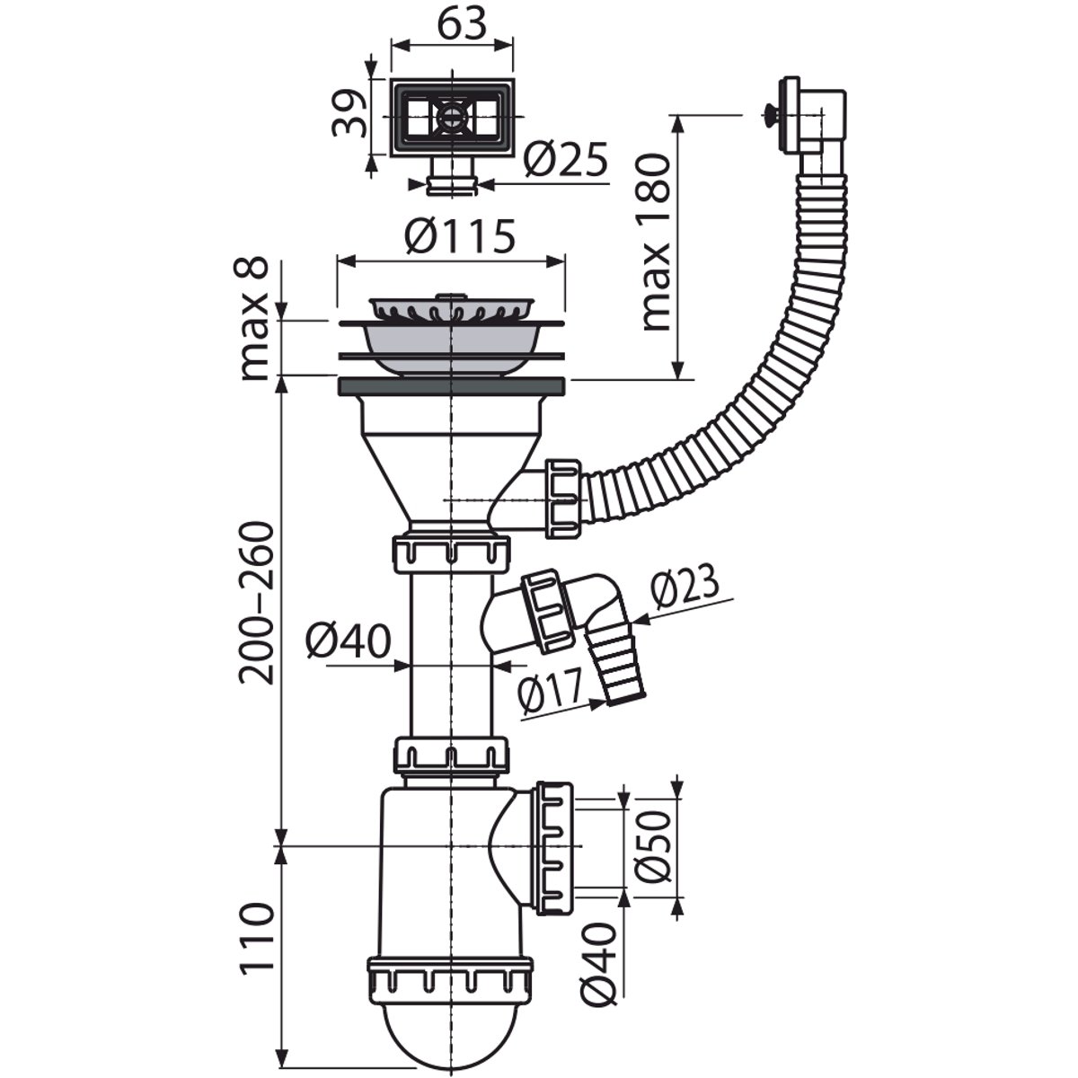 Бутылочный сифон для раковины Alcaplast A401 с нержавеющей peшeткой. Легко устанавливается, снимается и очищается. Цвет решетки: хром. Решетка из нержавеющей стали диаметром 63 мм с пробкой из ПВХ. Подключение к сливной трубе диаметром 32 мм. Материал: полипропилен, устойчив к термическим и химическим воздействиям. Гидрозатвор: 58 мм. Скорость стока воды 57 л/мин. Термическая устойчивость до 95 градусов. В комплекте поставки: сифон.