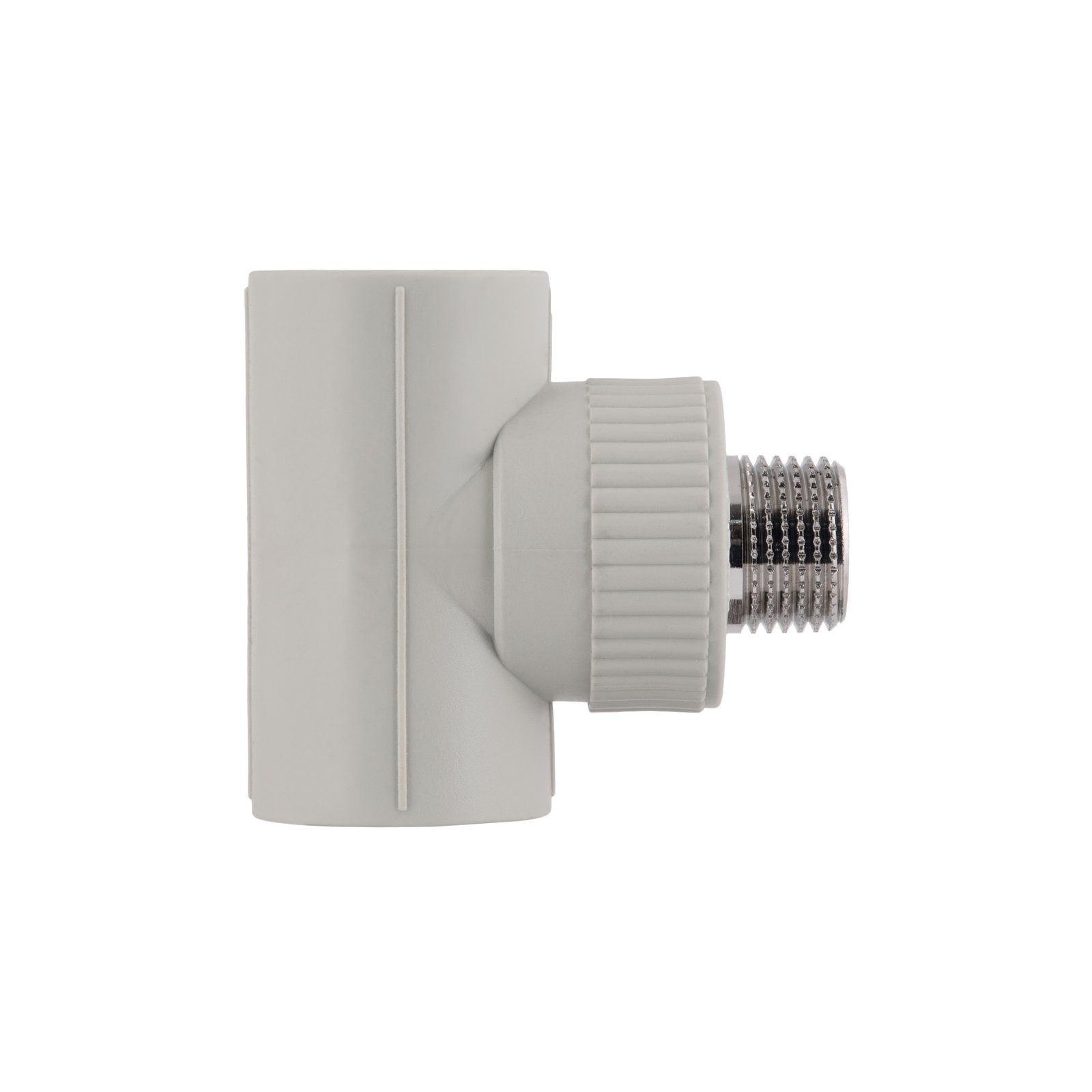 Трехсторонний тройник PPR Blue Ocean 25х1/2"х25 НР выполнен из высококачественного полипропилена с равными диаметрами подключения под пайку по 25 мм и наружным диаметром латунного резьбового подключения 1/2". К рабочим параметрам следует отнести возможность распределения воды по трубам под давлением до 25 бар и с температурой до 90 °С.