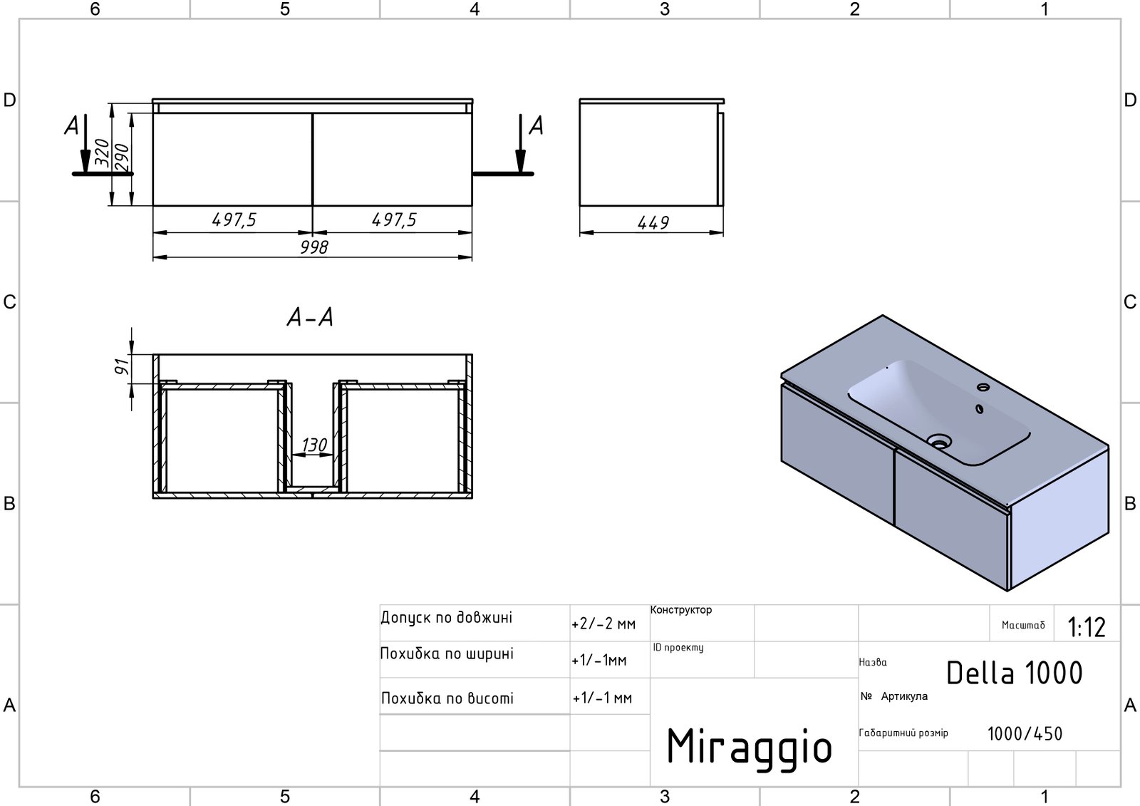 Умивальник, тумба у зібраному вигляді