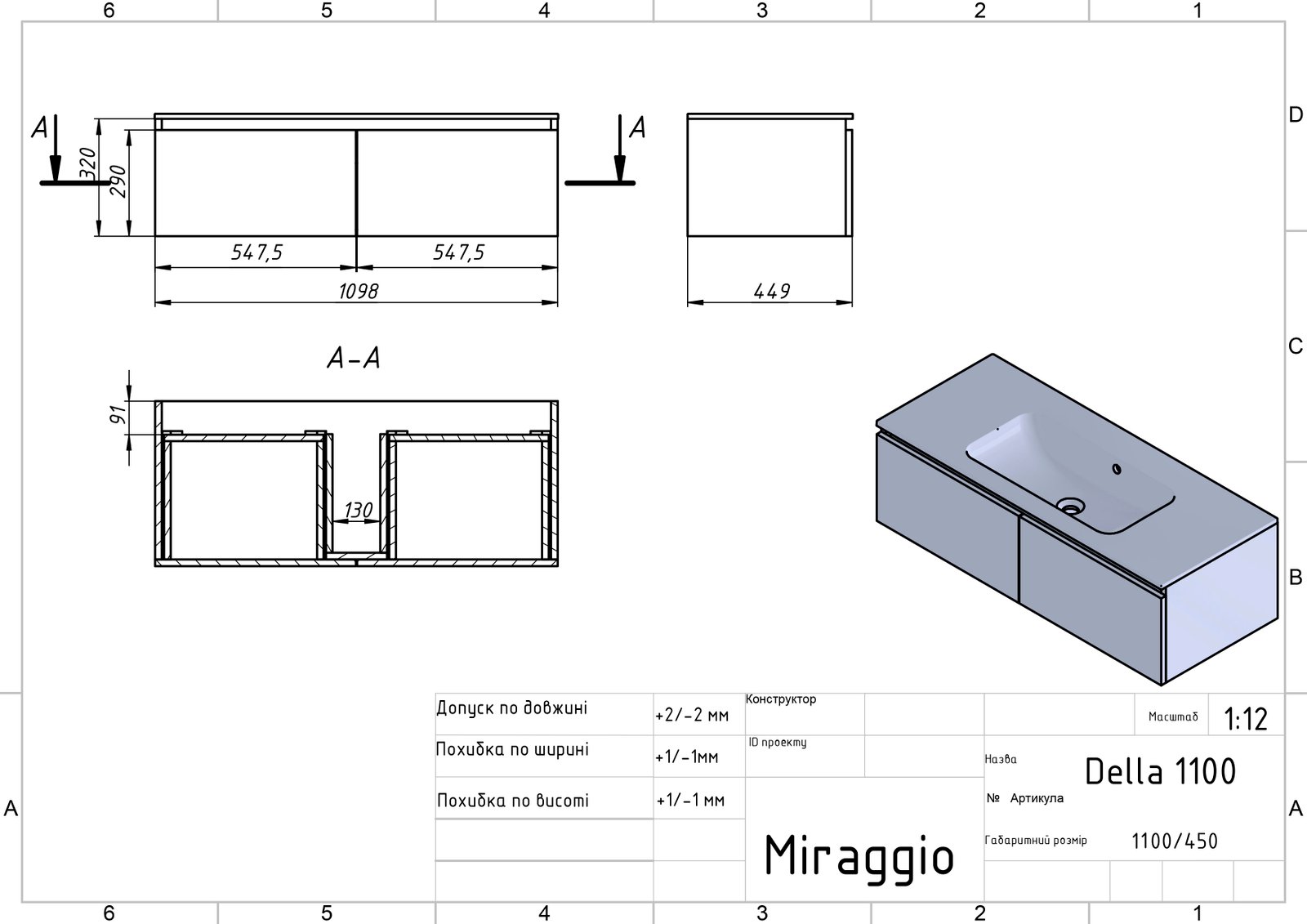 Умивальник, тумба у зібраному вигляді