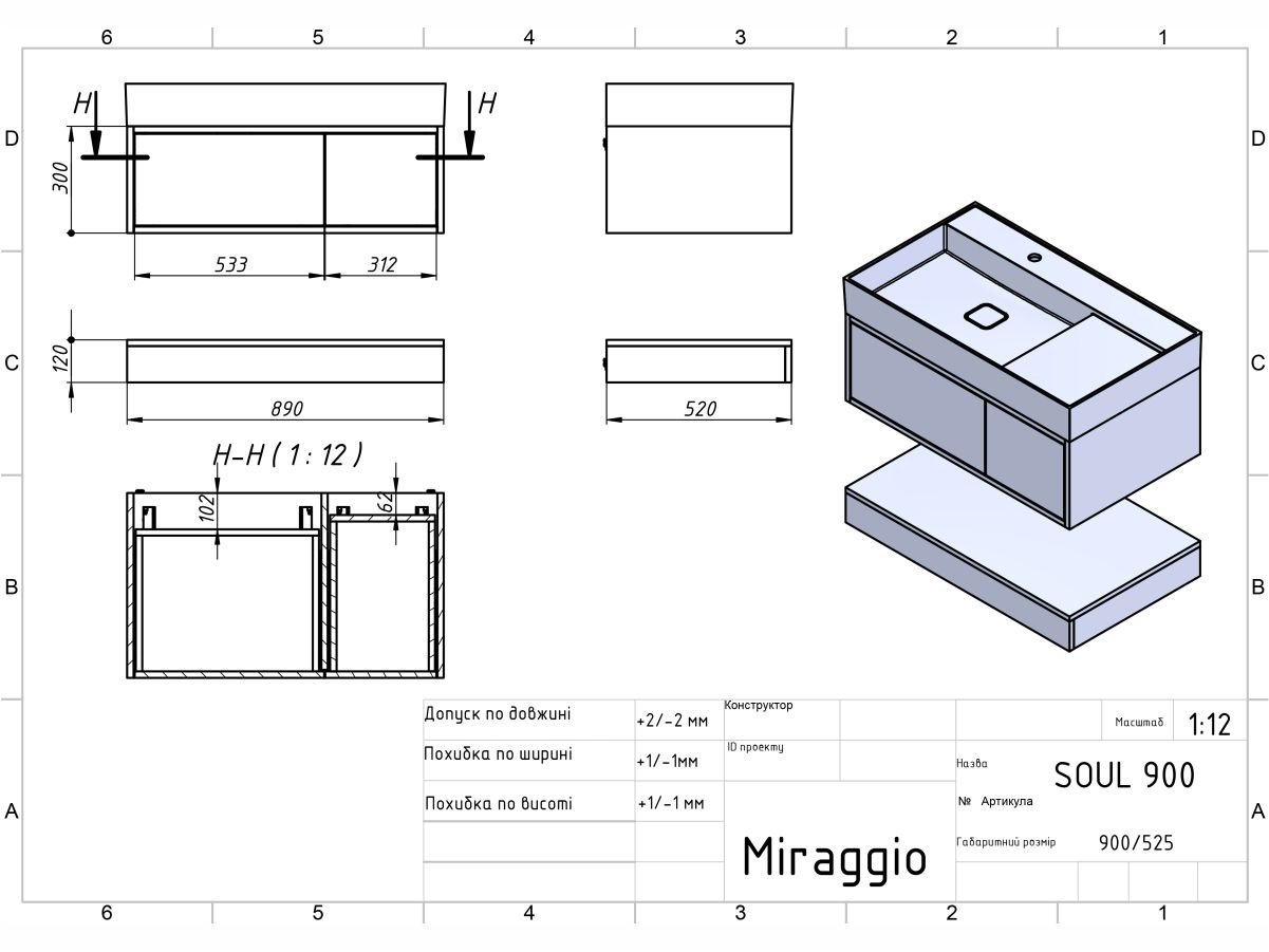 Тумба підвісна DUO Сірий для умивальника SOUL 900