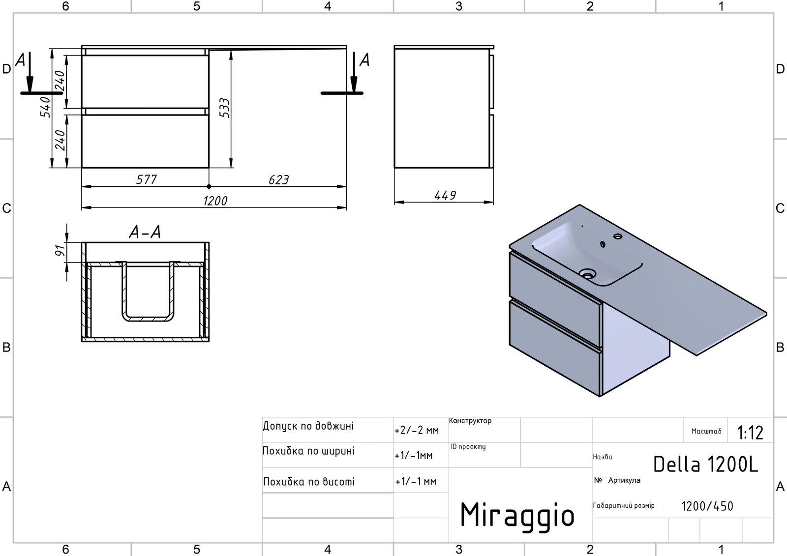 Тумба підвісна LUMO Біла матова для умивальника DELLA 1200 L