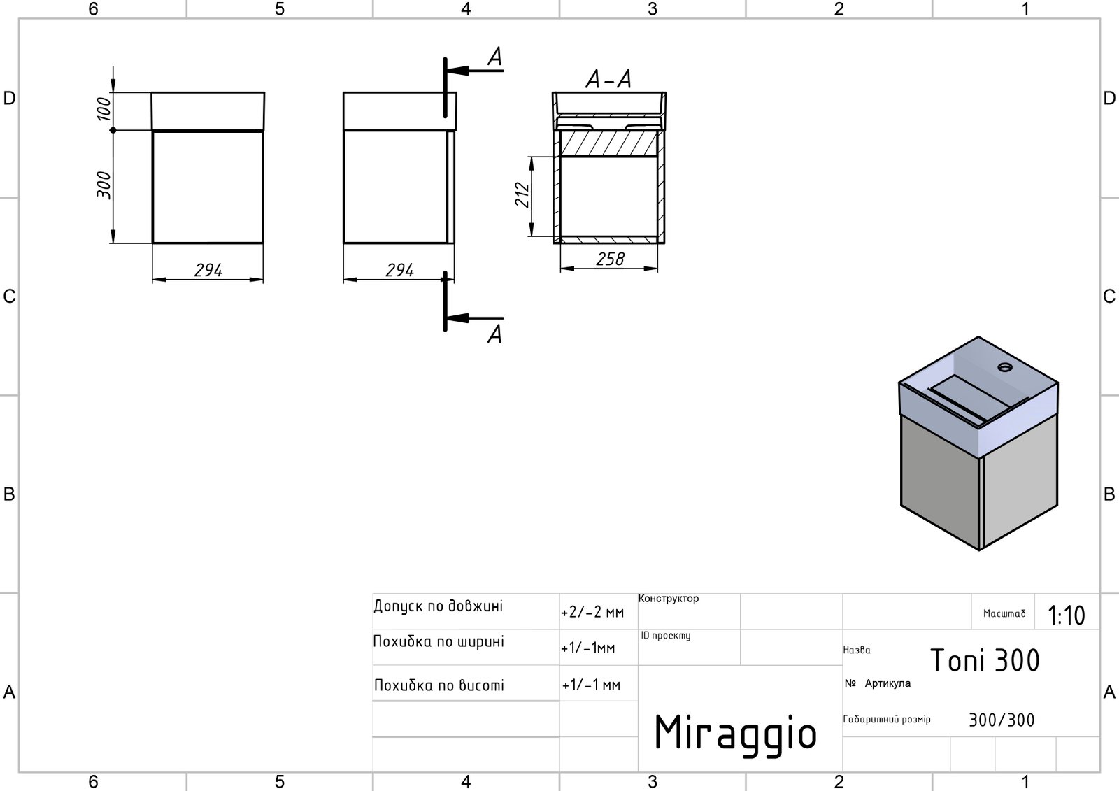 Тумба підвісна MINIMA сіра для умивальника TONI 300