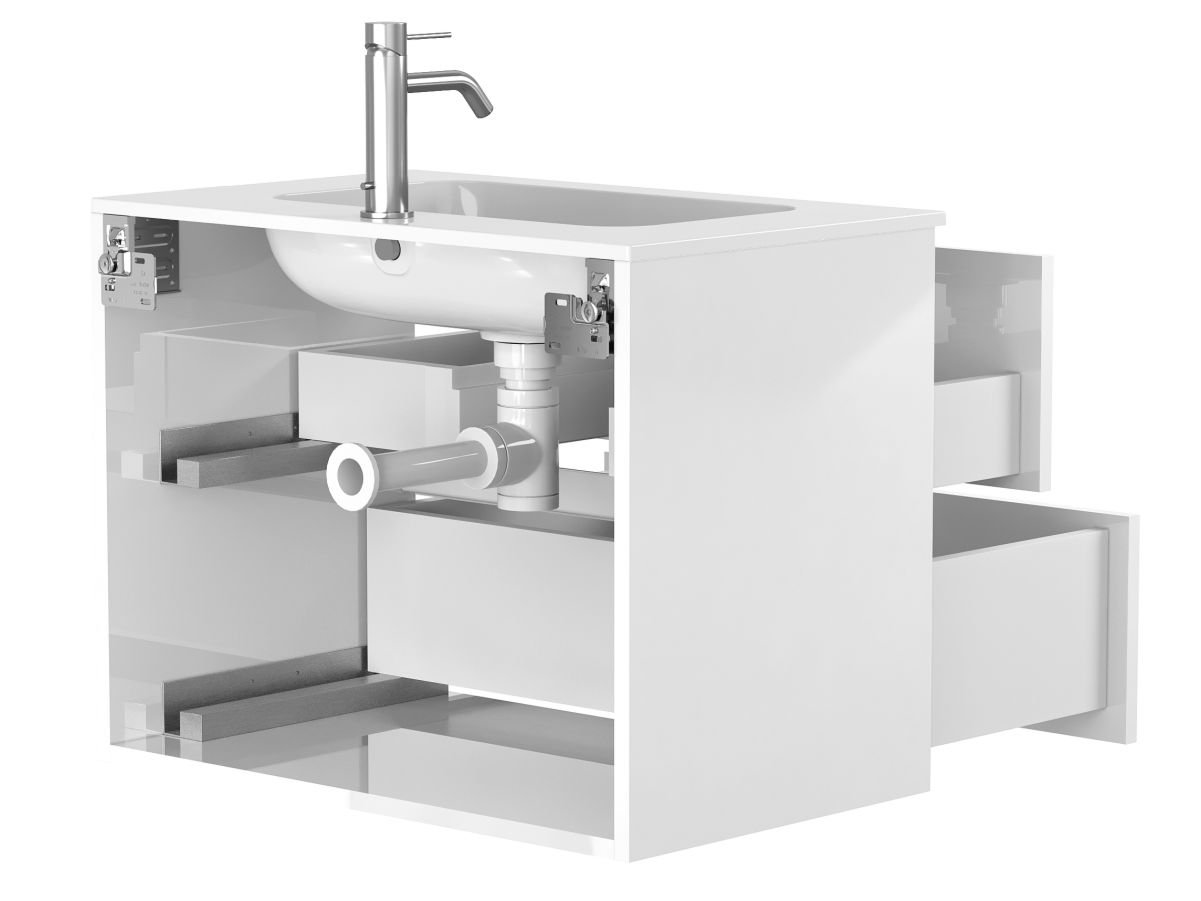 Тумба підвісна NATURA біла глянцева з умивальником JESSEL 700 від бренду MIRAGGIO — практичне та стильне рішення для ванної кімнати дому, готелю чи апартаментів.
