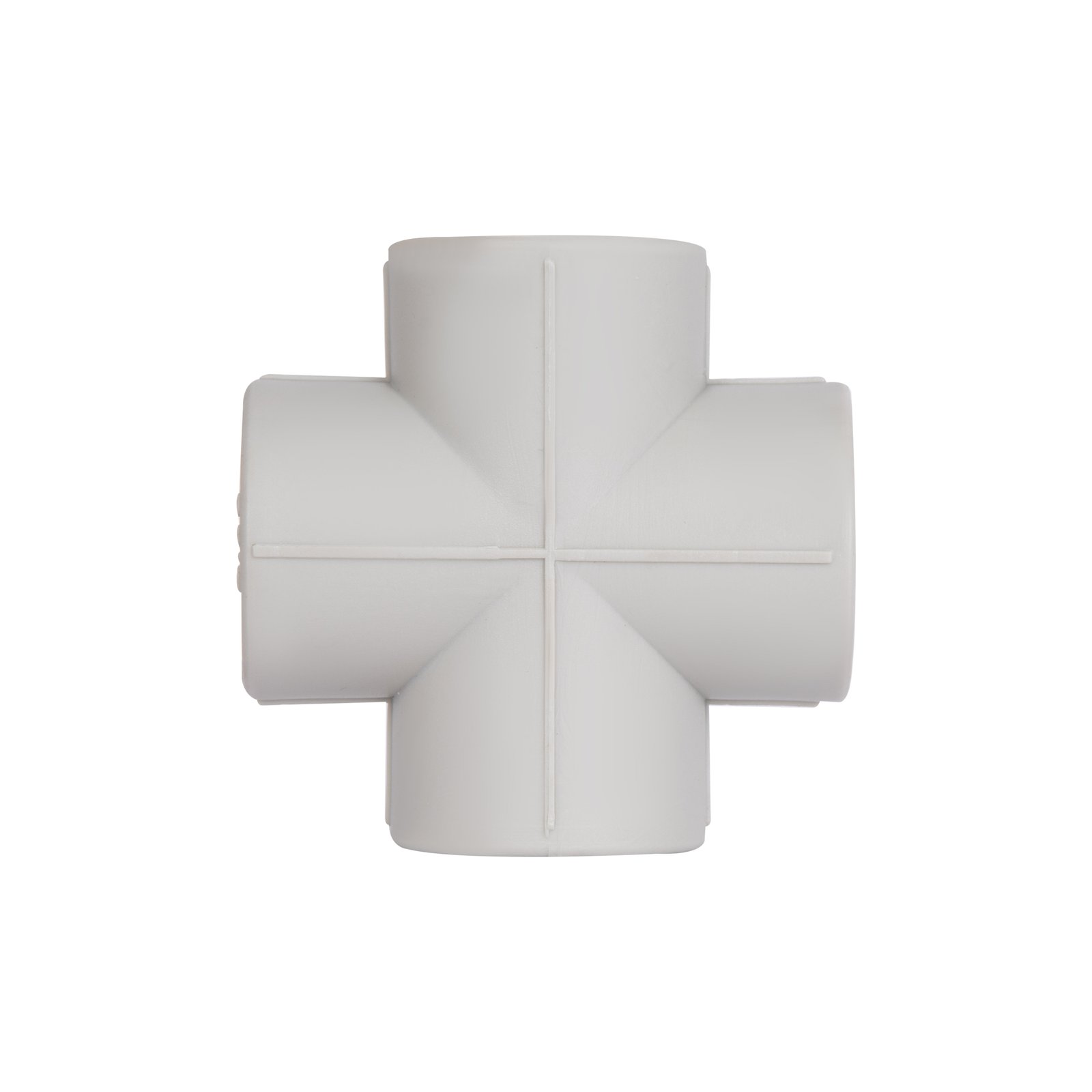 Крестовина PPR Thermo Alliance 20 сделана из высококачественного полипропилена. Во время сваривания материал быстро плавится без прилипания к насадкам аппарата для полифузной пайки. Гладкость стенок фитинга препятствует образованию отложений. Крестовина равнопроходная, выходы расположены в одной плоскости. Фасонная деталь предназначена для труб с внешним диаметром 20 мм. Максимальная температура рабочей среды — 90 °C.