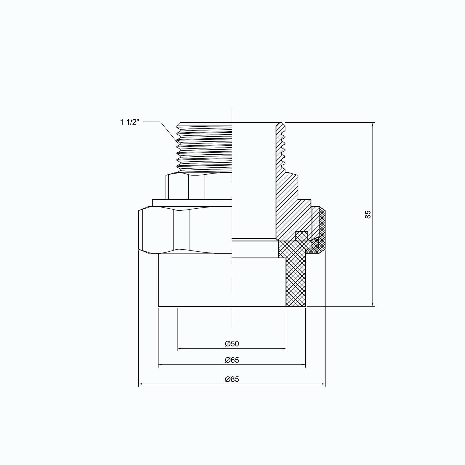 Американка PPR Thermo Alliance 50х1" 1/2 НР по условиям эксплуатации может работать при температуре рабочей среды до 90 °C. Латунная часть снабжена наружной резьбой 1 1/2". Внутренний диаметр полипропиленовой части — 50 мм. Конструктивно изделие состоит из двух штуцеров, шестигранной гайки и кольцевой герметизирующей соединение прокладки. Для подсоединения к ППР-трубе необходим аппарата для пайки полипропилена.