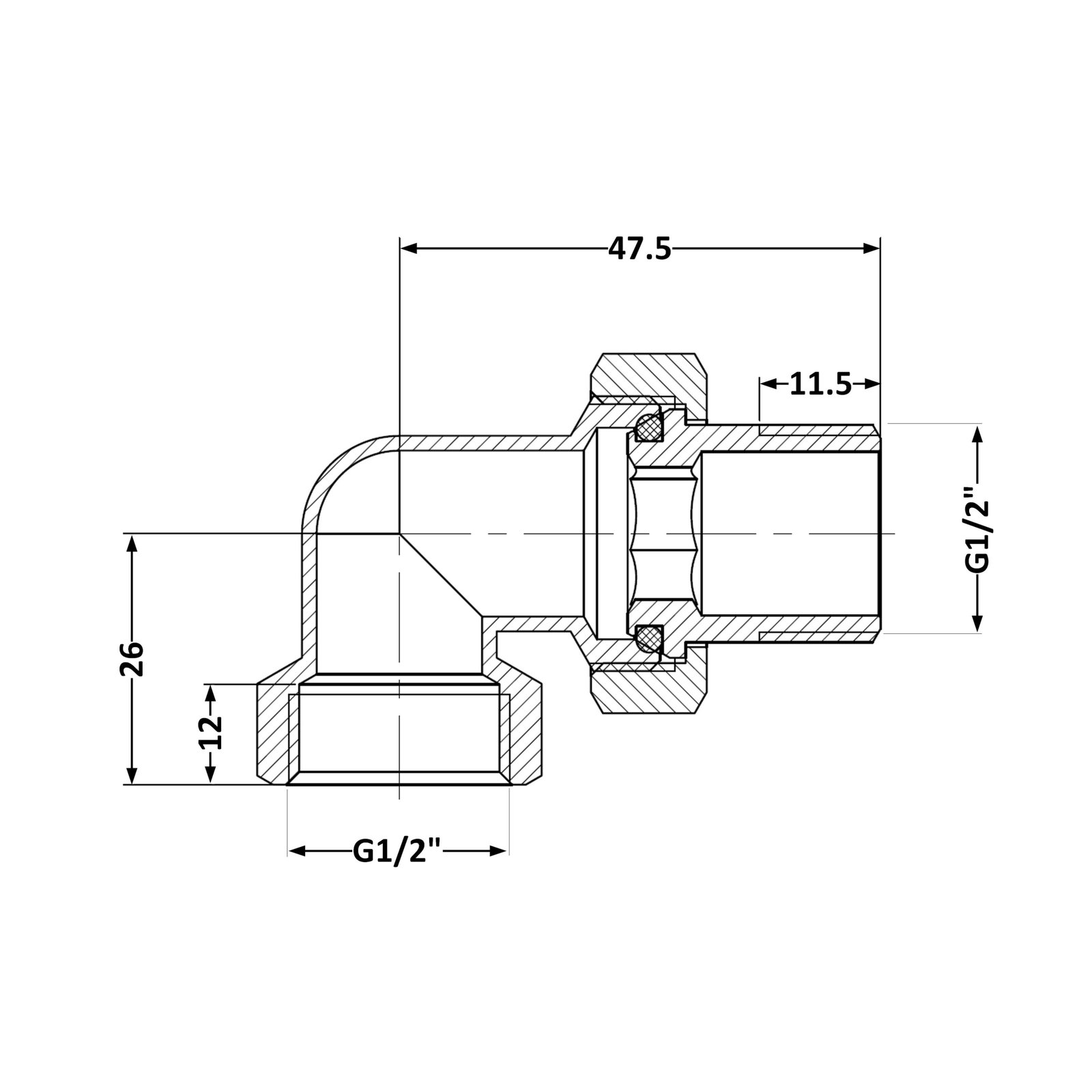 Сгон-американка Thermo Alliance Standart 1/2"ВН никель, угловой TAS191W15