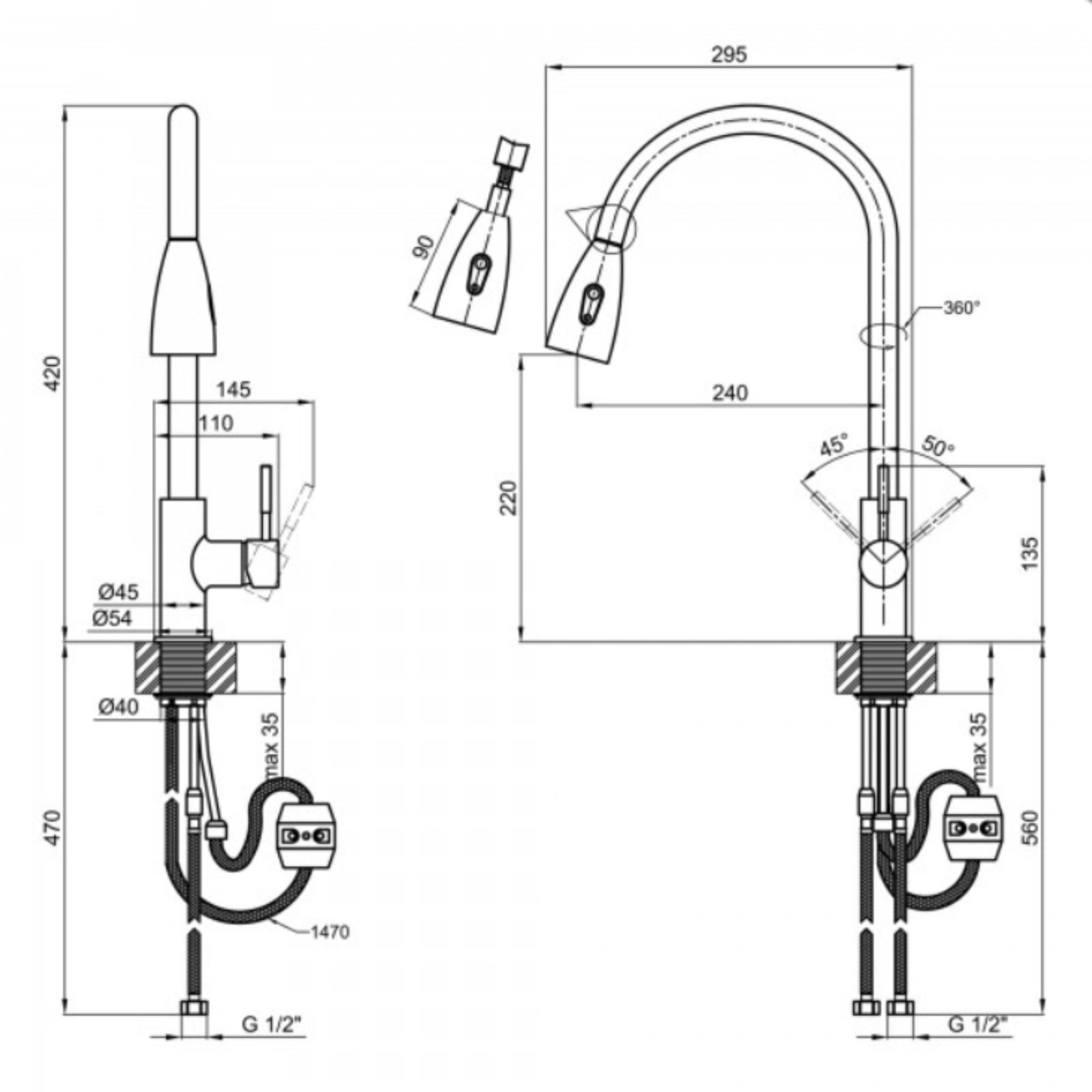 Довжина висувного шланга - 1470 мм.