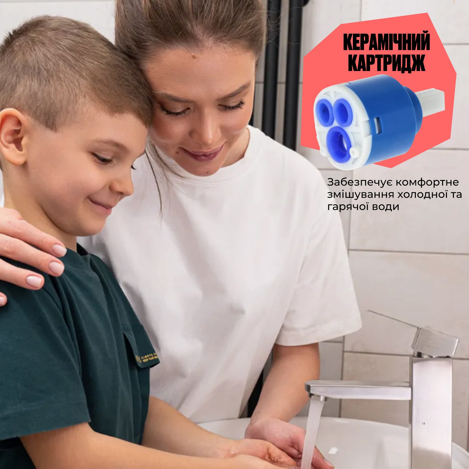Смеситель для раковины Lidz (NKS) 10 30 001 00 изготовлен из нержавеющей стали, которая не подвержена коррозии, устойчива к ударам и трещинам. Никелированная брашированная поверхность придает смесителю не только долговечность, но и оригинальный внешний вид. Интенсивность водного потока и температура регулируются с помощью перемещения рычага. Подключение воды происходит через гибкие шланги с диаметром подключения 1/2", которые входят в комплект поставки.
