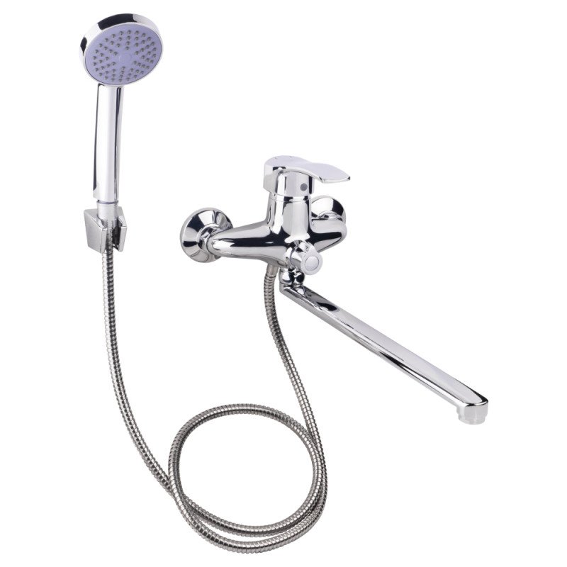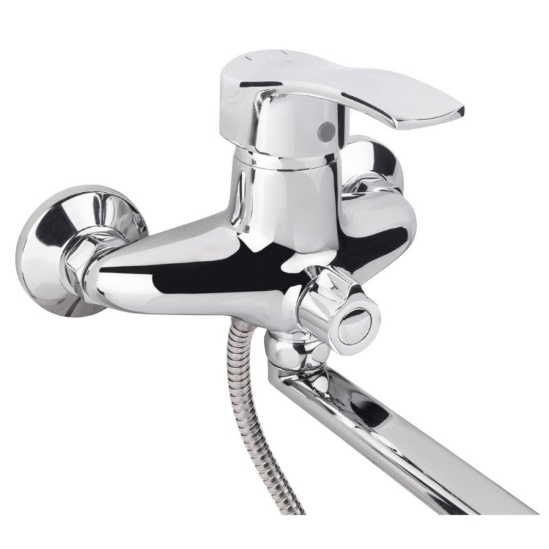Смеситель для ванны Lidz (CRM) 41 86 005B-1 New с длинным поворотным изливом изготовлен из цинка, укомплектован кронштейном для ручного душа, душевым шлангом и лейкой. Благодаря хромированному покрытию имеет прочную поверхность и привлекательный внешний вид. Декоративные розетки скроют погрешности установки на отделке комнаты. Напор воды и ее температура регулируются поворотом рычага в необходимое положение. Переключение ванна/душ осуществляется при помощи дивертора.