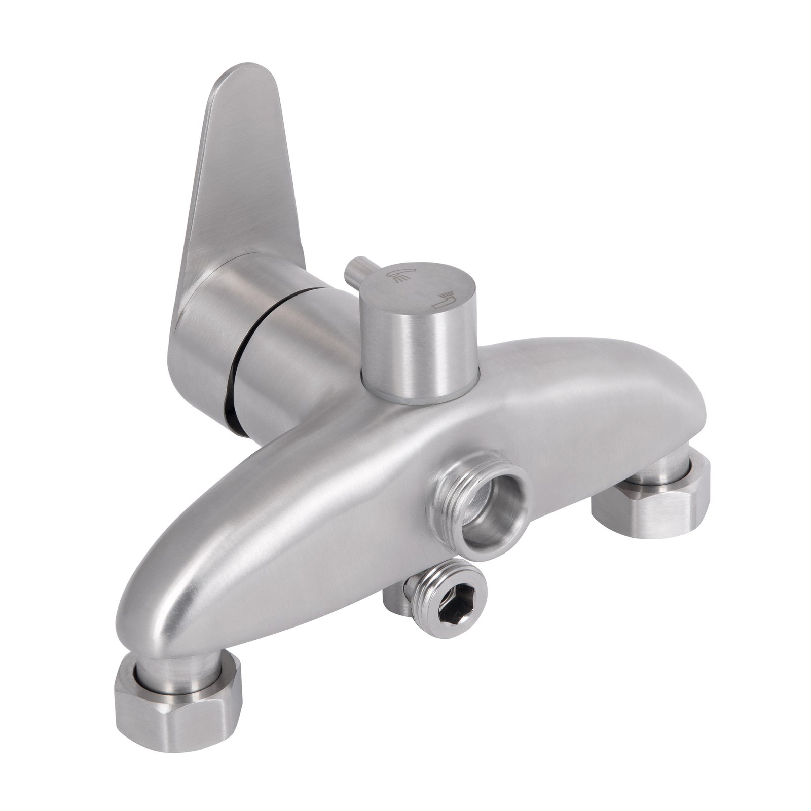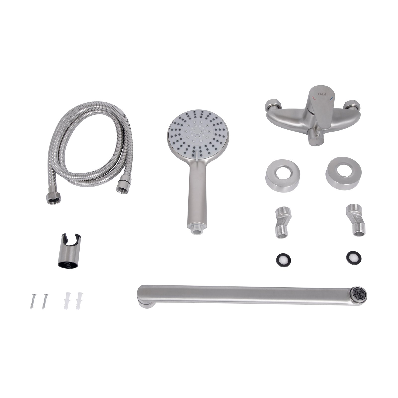 Смеситель для ванны Lidz (NKS) 09 35 005-1 выполнен из нержавеющей стали, что гарантирует длительный срок эксплуатации. Для включения подачи воды достаточно поднять рычаг и повернуть его в необходимую сторону. Смеситель монтируется на стену над ванной с помощью крепежных элементов, которые входят в комплект. Круглые розетки скроют погрешности установки на отделке. Держатель лейки крепится также на стену. Таким образом, ваши руки будут свободны во время душевых процедур.
