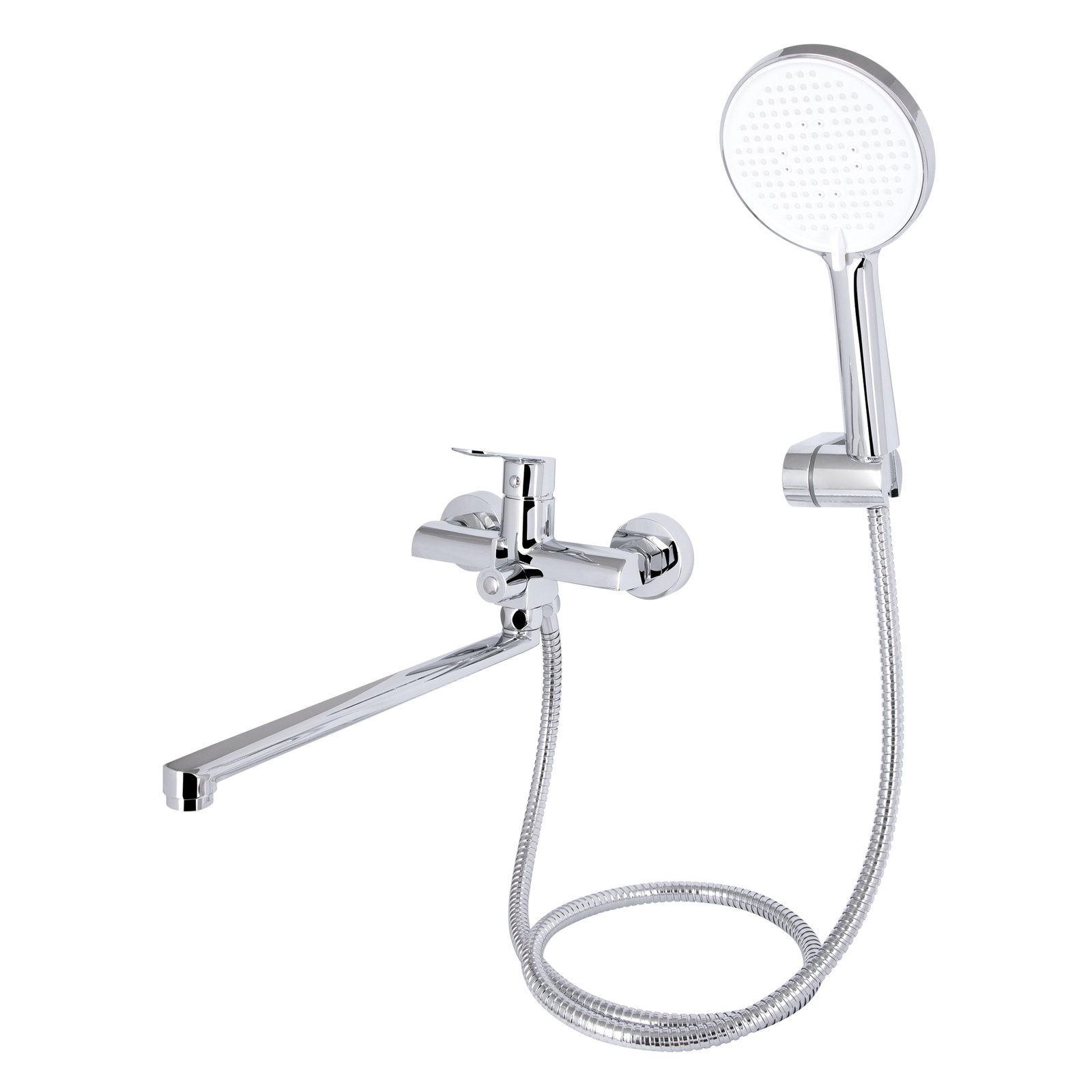 Смеситель для ванны Qtap Evia QTEVI260CRM47579 с длинным поворотным изливом – это удобное и практичное решение для комбинированного использования в ванной комнате. Изготовленный из прочной латуни с хромированным покрытием, он устойчив к коррозии и механическим повреждениям. Длинный излив обеспечивает удобство при наполнении ванны и может поворачиваться в сторону умывальника. Встроенный переключатель позволяет легко менять режим подачи воды между изливом и душем. В комплект входит душевой гарнитур, включающий лейку и шланг. Настенный монтаж обеспечивает удобство в эксплуатации и экономию пространства.
