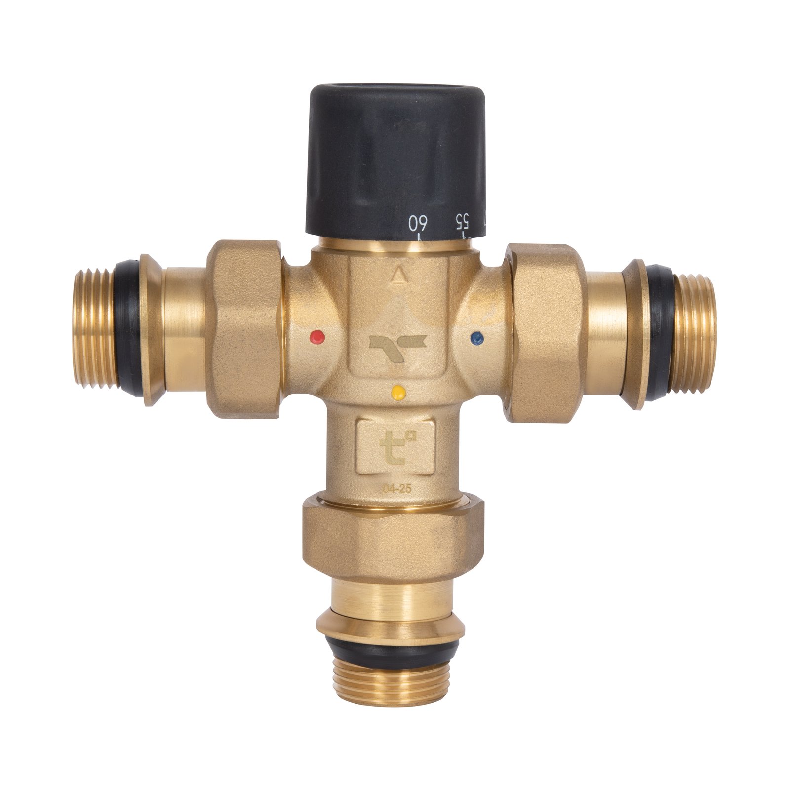 Смеситель термостатический Thermo Alliance Forte 3/4" автоматически подаст на выход воду заданной температуры. Устройство рассчитано на максимальное давление 5 бар (динамическое), диаметры всех подключений одинаковые, 3/4 дюйма. Изделие выполнено из латуни. Отметка на корпусе показывает место входа горячей воды. На ручку регулировки нанесена шкала, позволяющая регулировать температуру рабочей среды.