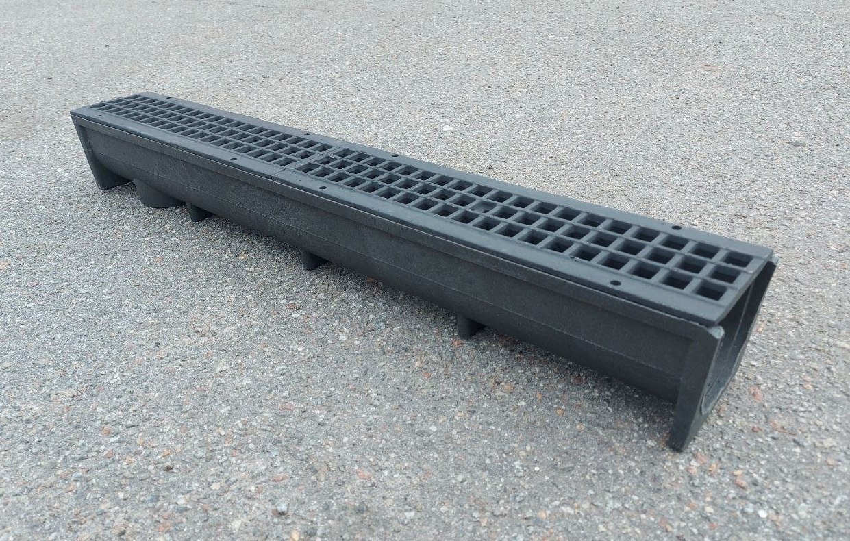 Жолоб полімерпіщаний глибокий 1000*140*125 мм чорний + 2 решітки чавунні